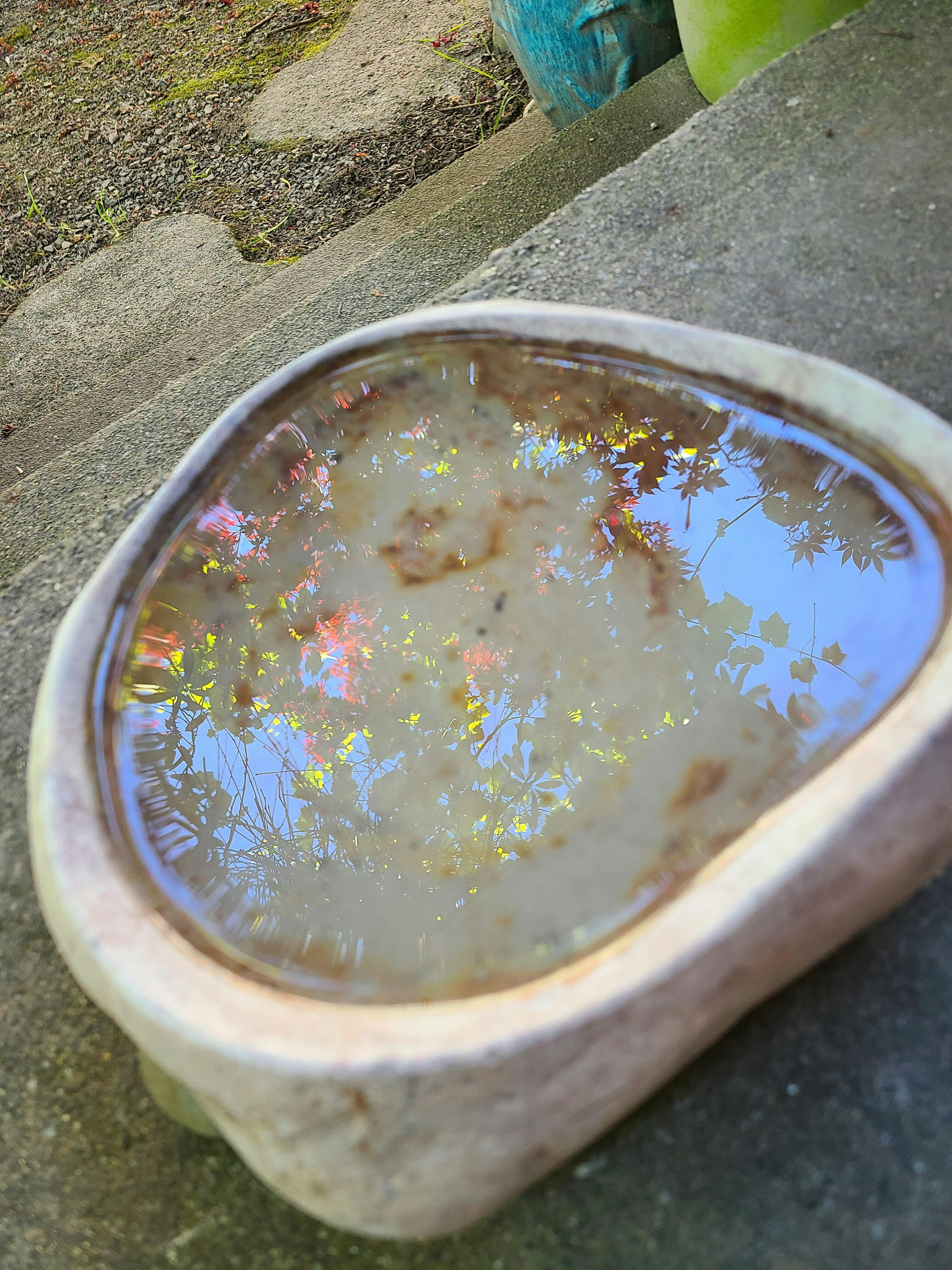 So here's the thing with the two small stones you'll get in the box, they are shims to help find the sweet spot where the bath holds the most water. Together with the bath, they act as a tripod of sorts, very adjustable, and flexible for any hard surface. Put the stone down, put the shims under, put water in, adjust shims, put a little more water in, adjust, add, adjust, add, and done.