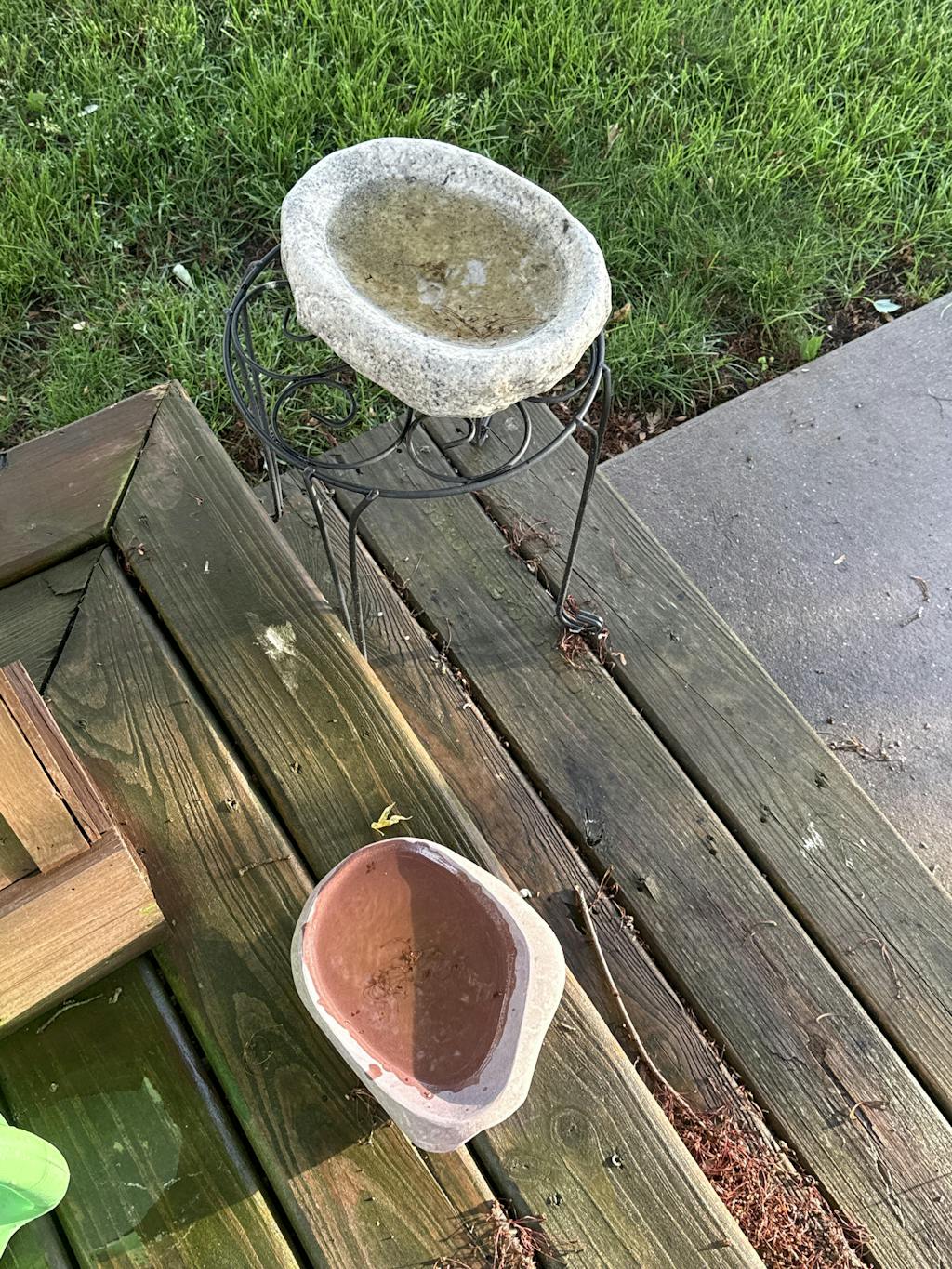 Recently purchased a small river stone birdbath to put on my deck for the winter. It's perfect. The birds & squirrels have already been enjoying it. We also have a large granite birdbath in our yard.